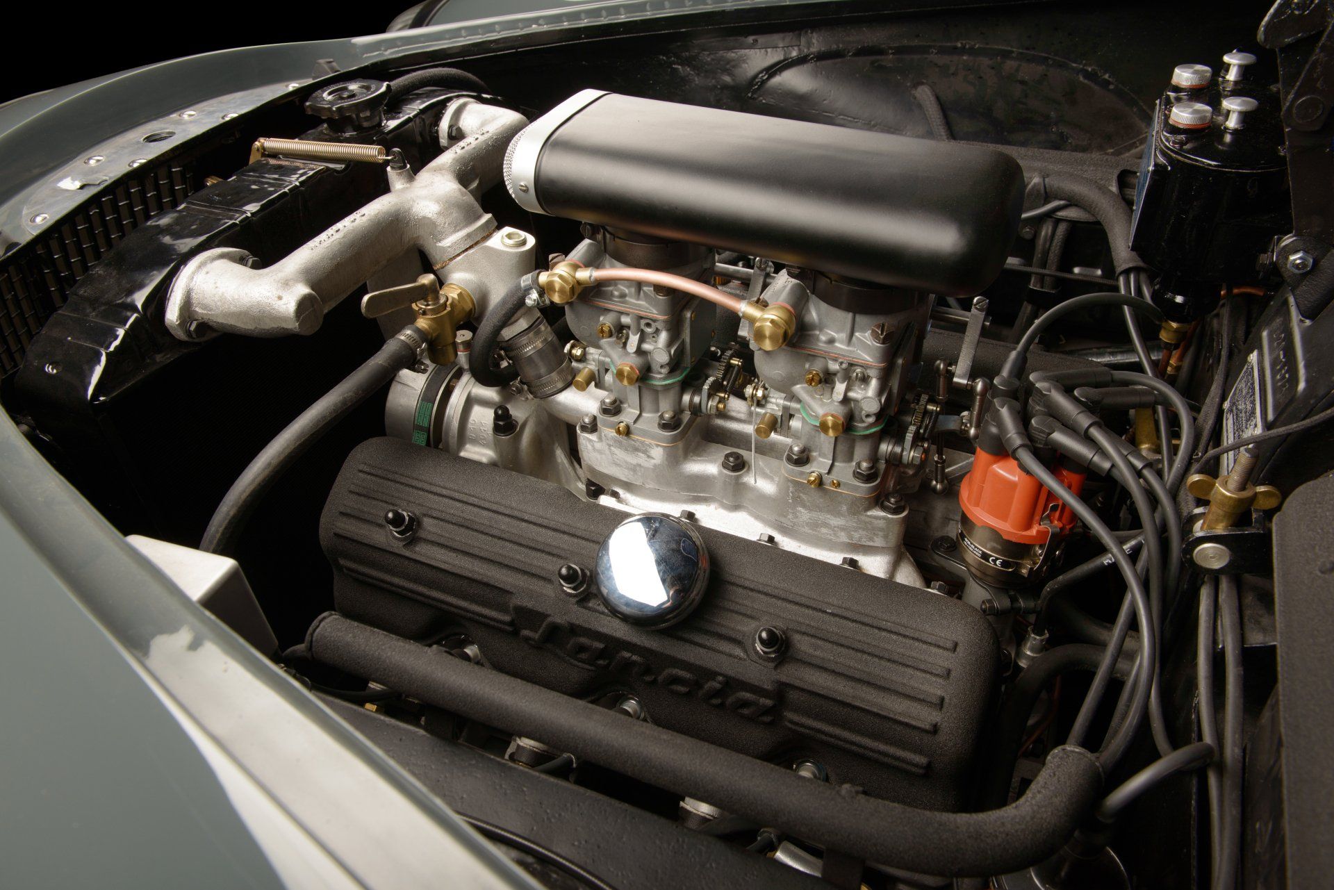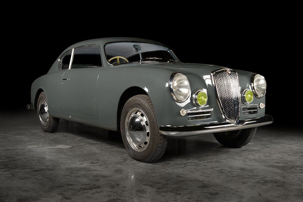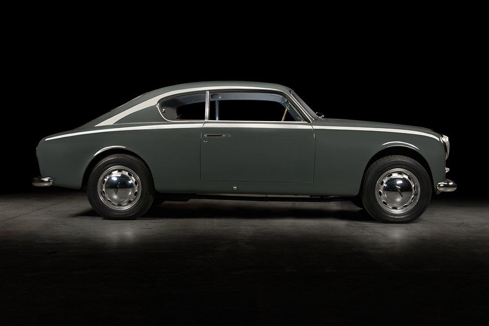 Designed by Vittorio Jano for Lancia & C. and launched at the 32nd Salone dell’Automobile in Turin in 1950, the Aurelia was arguably the most advanced production motor car on the market at the time. The following year saw Lancia launch the more sporting B20 GT Coupé with a larger displacement and more powerful engine installed in a shorter and lighter chassis and clothed in svelte, minimalist coachwork (originally penned by Boano and built by Carrozzerria Viotti and later built by Pinin Farina). The new model was pure Lancia and a pure GT with poise and purpose, destined for great success on the road and in competition. Not only was Lancia’s new model stylish and beautifully proportioned it was the result of close collaboration between two great engineers, Francesco de Virgilio and Vittorio Jano meaning that as well as having the all-aluminium 2.0 litre V6 motor up-front, it was as tight as a drum and handled predictably thanks to its unitary construction, transaxle and inboard brakes giving it evenly balanced weight distribution. The world’s first true Gran Turismo, production of the B20 GT lasted until the summer of 1958 by which time 6 Series had been developed and produced. 500 Aurelias were produced in the 1st Series followed by 731 of the 2nd Series of which this fine example is one. The 2nd Series B20 GT sported various upgrades; the 1,991cc V6 now produced 80bhp, the brakes were improved and several styling modifications were incorporated which included new chromed bumpers, a new dashboard with larger instruments, uniquely-shaped rear wings.