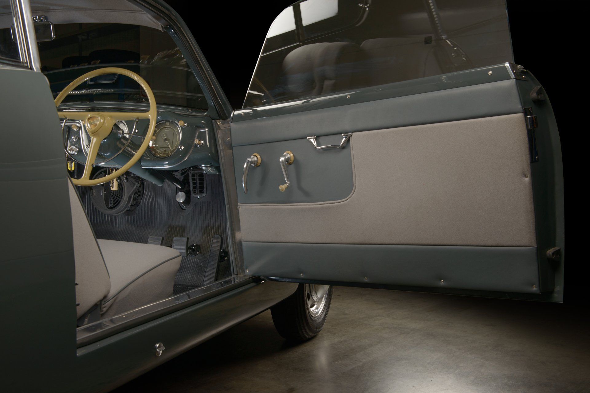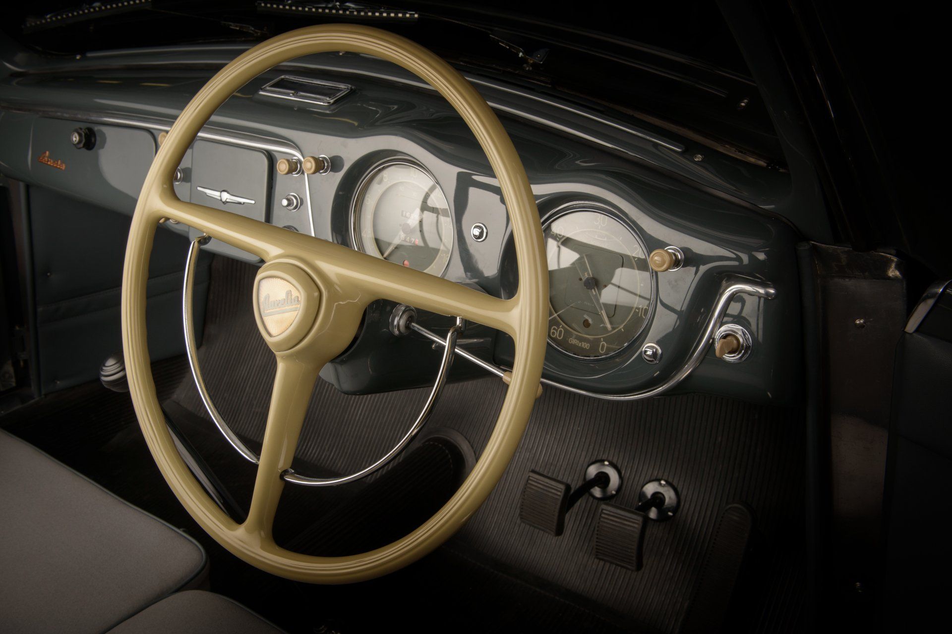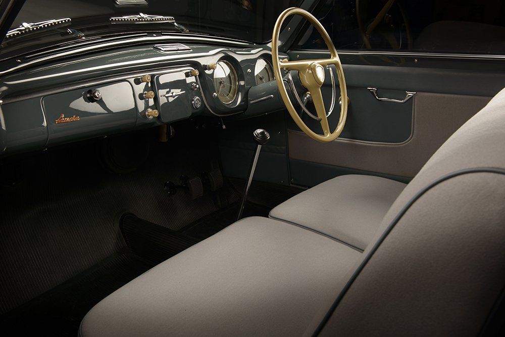 As per a letter from Francesco Gandolfi of the Lancia Aurelia Register dated February 1990, this 2nd Series Aurelia was built between April 29th, 1952 and May 29th, 1952 when records show that it was road-tested and approved. The letter also confirms the original colour combination of grey coachwork combined with grey, cloth upholstery, a colour combination that is elegantly understated and contrasts perfectly with the cream steering wheel, the painted dash, Bakelite switches and knobs and other refined details gracing the inviting interior. A further letter from the Aurelia Register details the first owner as a Mr Giovanni Zalti of Milan, Italy where it was registered on Milanese licence plate MI 193162. Mr Zalti kept the Aurelia for 4 years before selling it on to a Mr Guido Aniasi of Cagliari on the sunny Island of Sardinia. It then passed through the hands of a number of Italian owners before curiously being converted to run on methane gas in 1961. It was then sold to its first owner in the UK via Cranley Motors of London, SW7 and registered with the English licence plate 9 CLW. A copy of the original “buff” registration book on file shows that it passed through the hands of several custodians in the UK before being acquired by Mr Roger Bowen, to whom most of the correspondence with the Aurelia Register from the early 1990’s, is addressed.