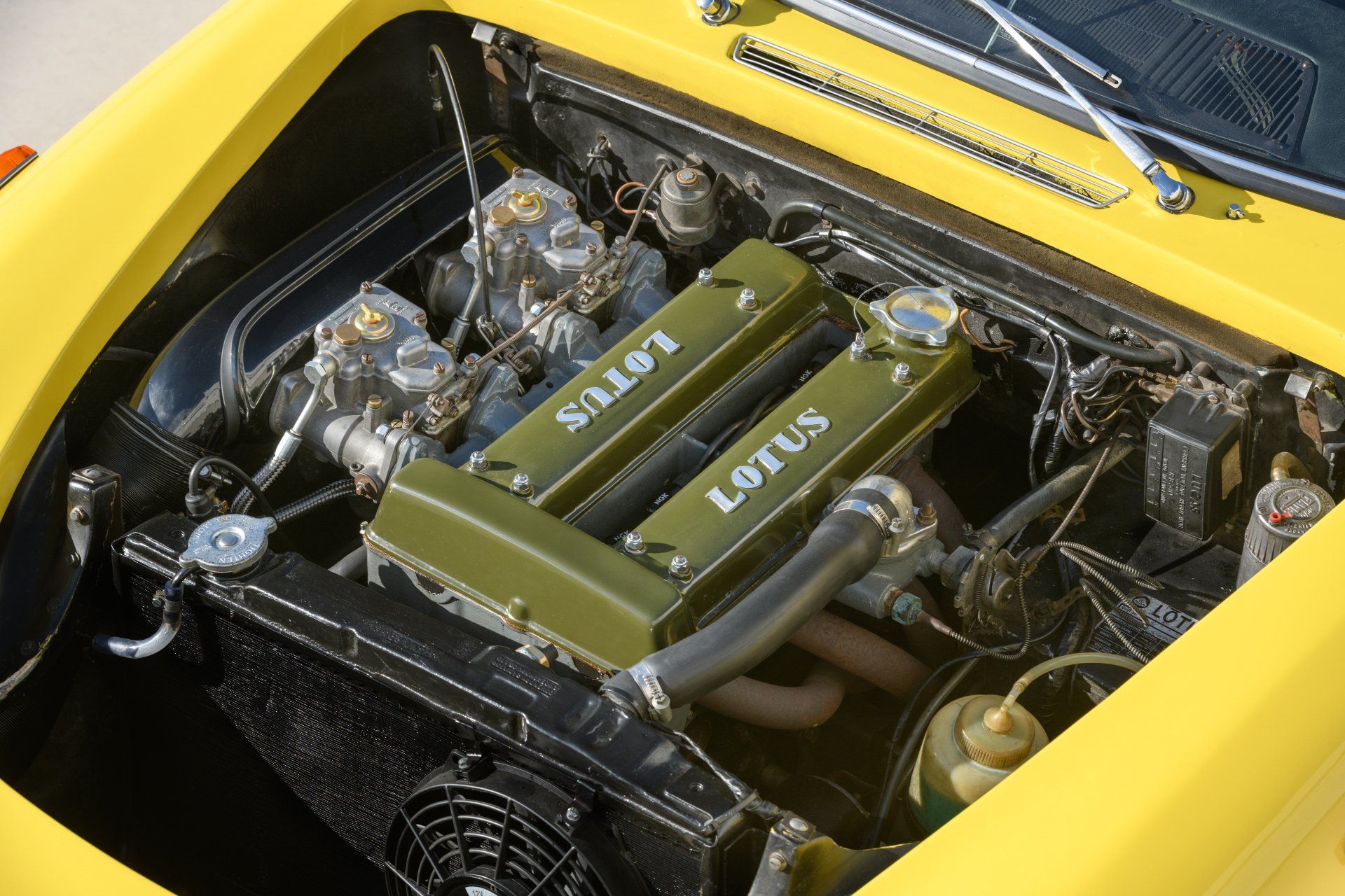 During his tenure he personally maintained the car and undertook all of the essential tasks including changing the time-worn original chassis for a Lotus-supplied galvanised replacement. The car was painted by the late, legendary Mick Miller, and the paintwork remains superb to this day. A check with the Lotus registrar also confirms that this car still retains its original factory supplied twin-cam motor fed via twin Weber carburettors. All of the important detail pieces which are becoming so hard to find for early Elans are present on this car, including, for example, black insert ‘teardrop’ gear knob, rear view mirror, Radiomobile radio, original jack etc. Most recently this car has received a great deal of refining and servicing by specialists at Bell Classic, invoices for which are available in the history folder.