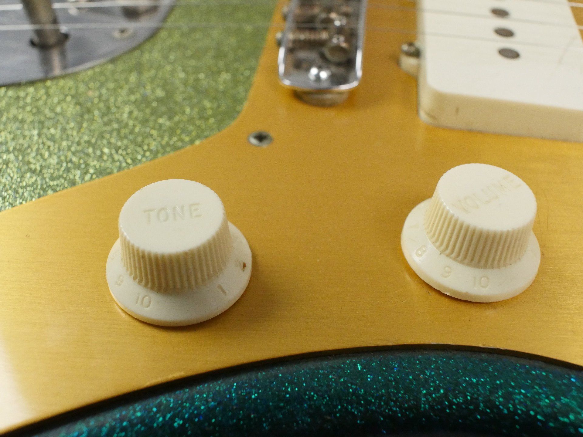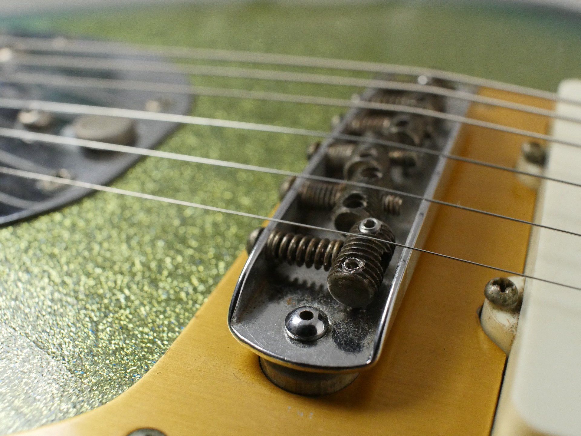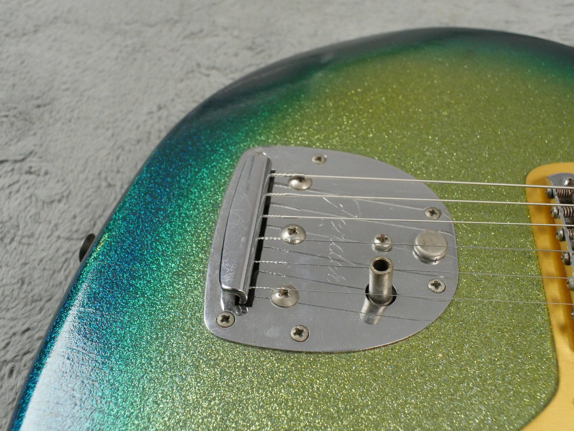A Fender Jazzmaster from 1958 in a unique sparkle finish ‘surfburst’. This guitar may have been owned and played by the guitarist Nick O’Malley in the seminal surf guitar band the Dick Dale and the Del-Tones of Miserlou fame. Fender didn’t have the skills to laydown these sparkle finishes in those days and this guitar was handed out to a guy called Dennis Swiden who did the best sparkle and pearl finishes back in the day. Either way this is a special guitar and a lovely time capsule of that uniquely west coast cultural era.